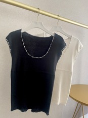 小ぶりなパールに柔らかな生地感の女性らしいTシャツ