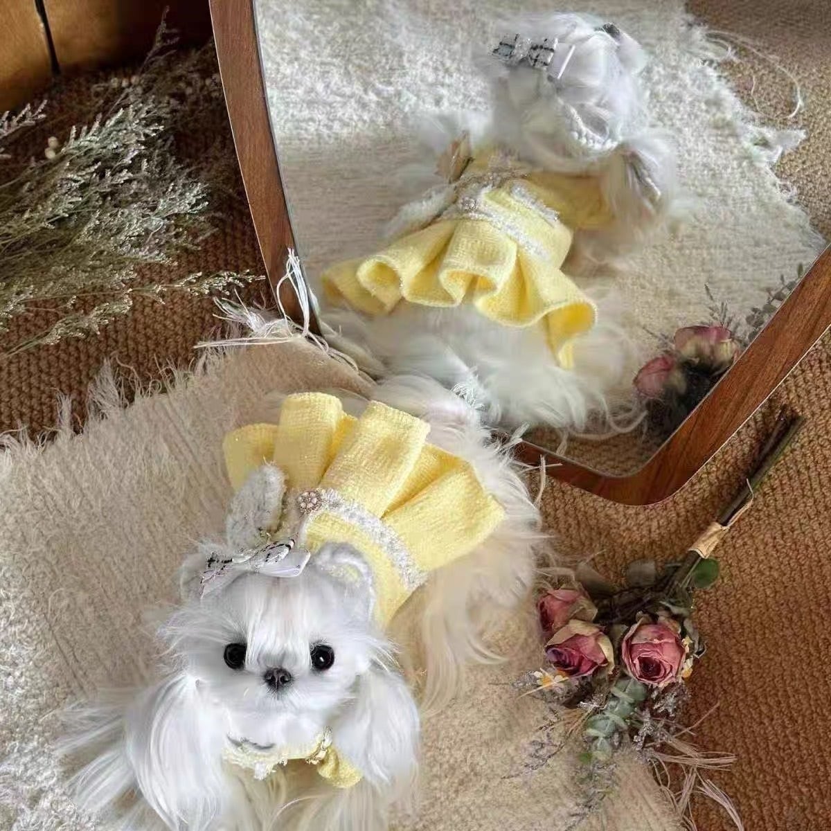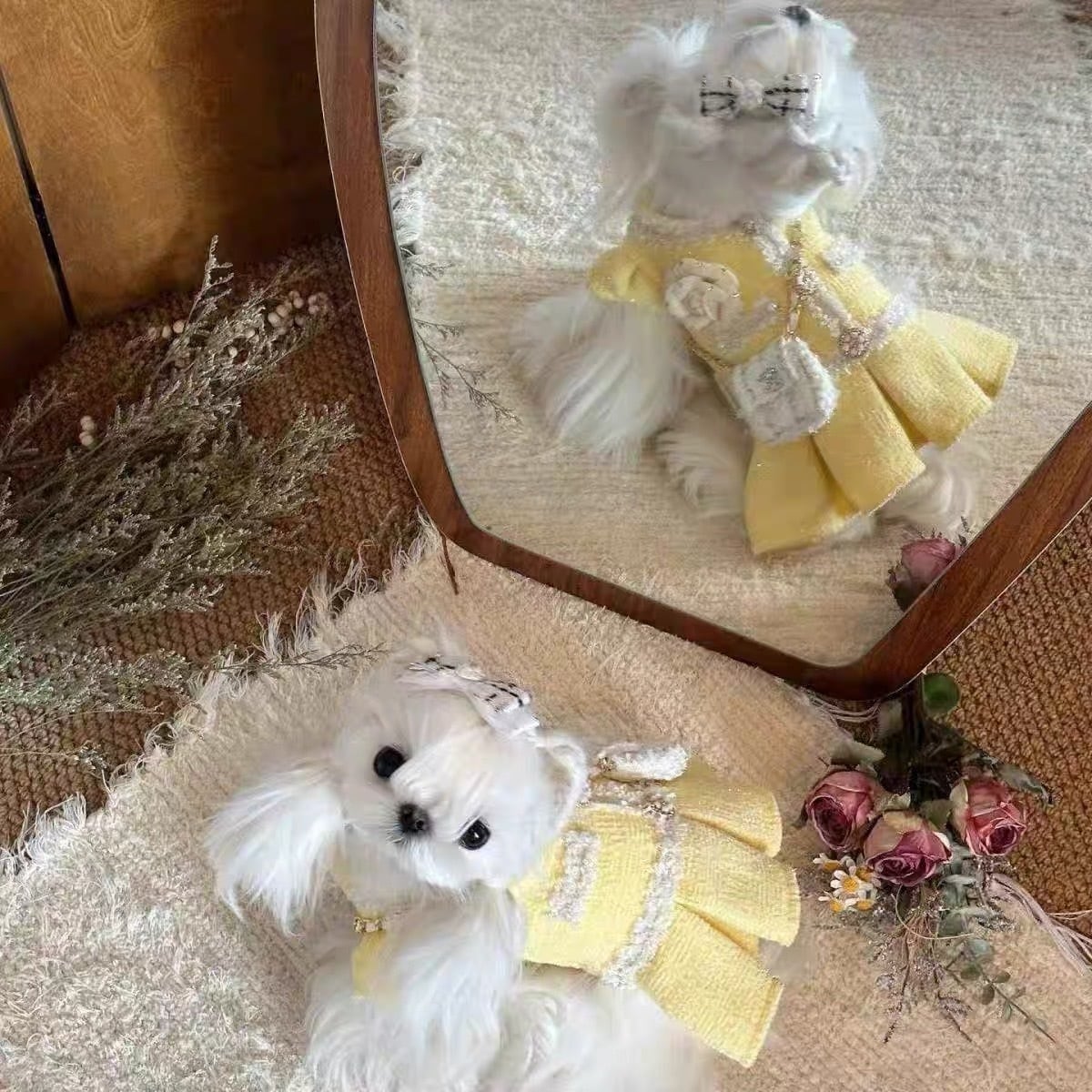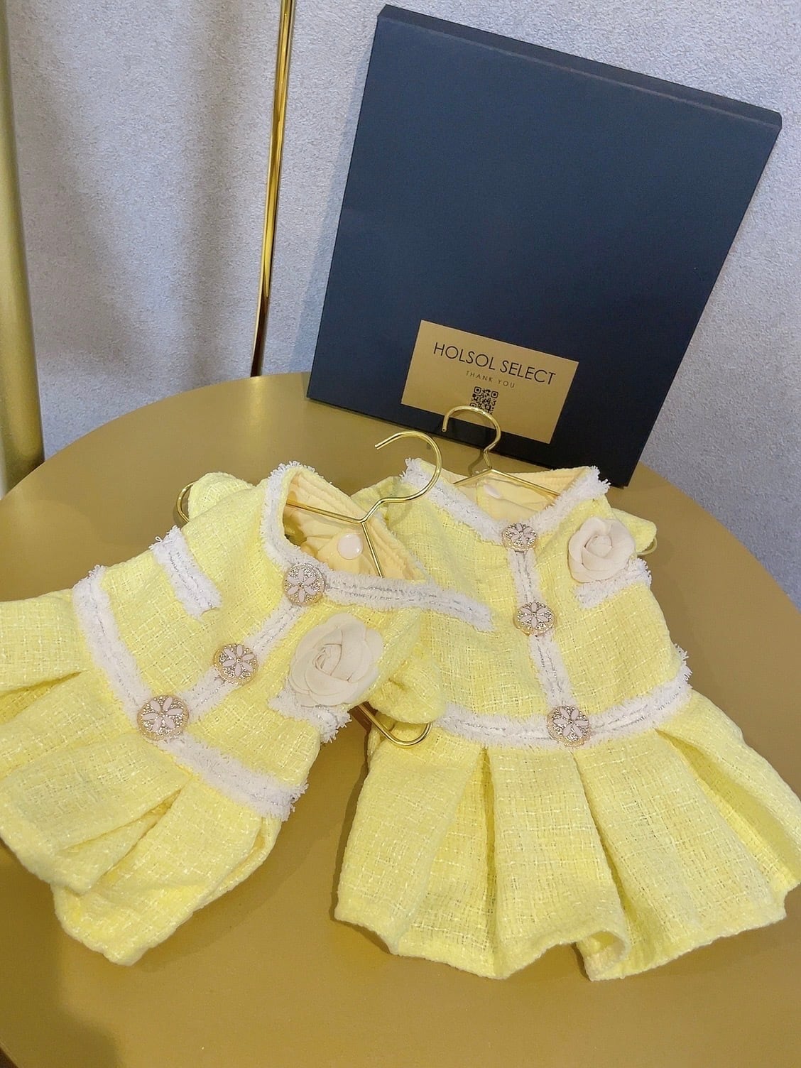 【2025NEW】イエローツイードミニバッグドッキングワンピース