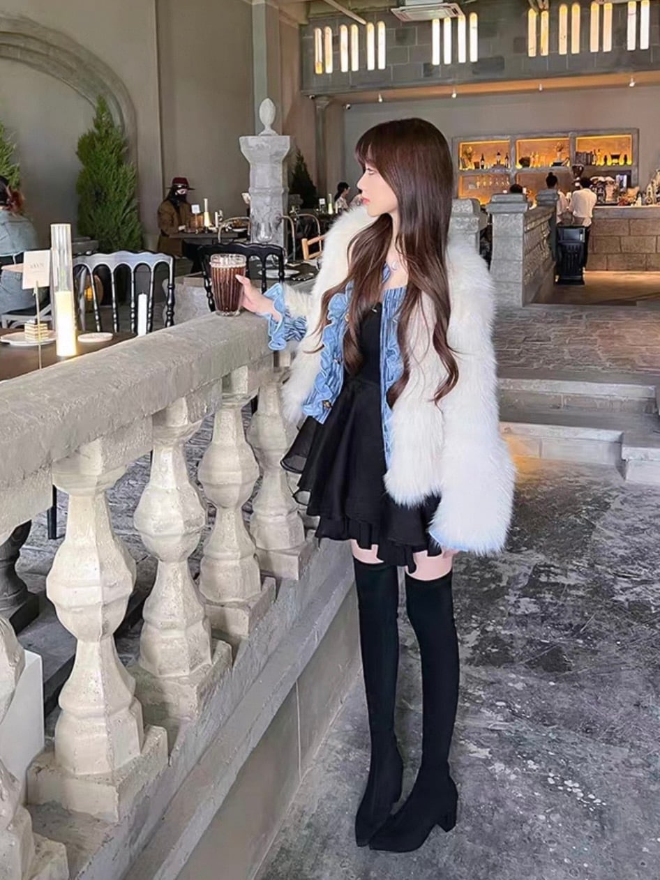 足周りの柔らかスエード調生地に6cmヒールのニーハイブーツ
