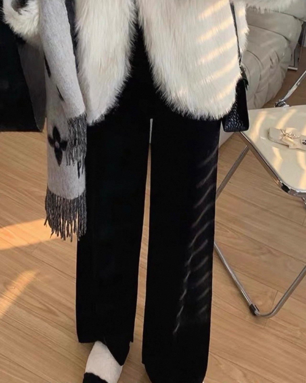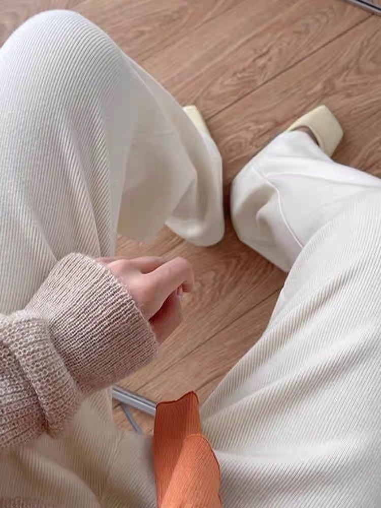小柄さん必見!【ホワイトXS即納】丈短めニットパンツ