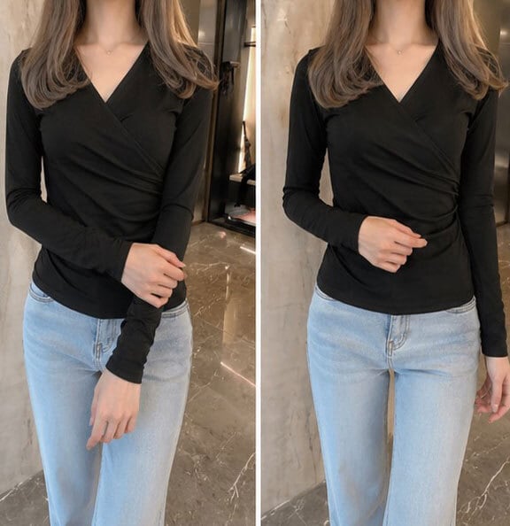 【即納】長袖ストレッチクロストップス