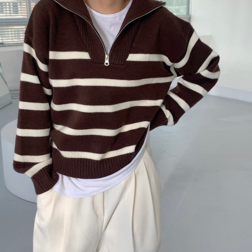 【人気★】ボーダージップニット