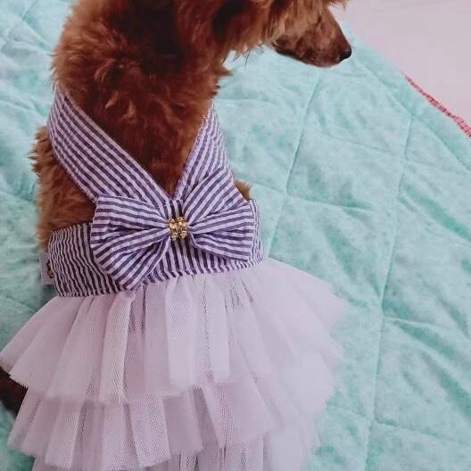 【即納入荷★】DOG★ストライプチュールドッキングドレス