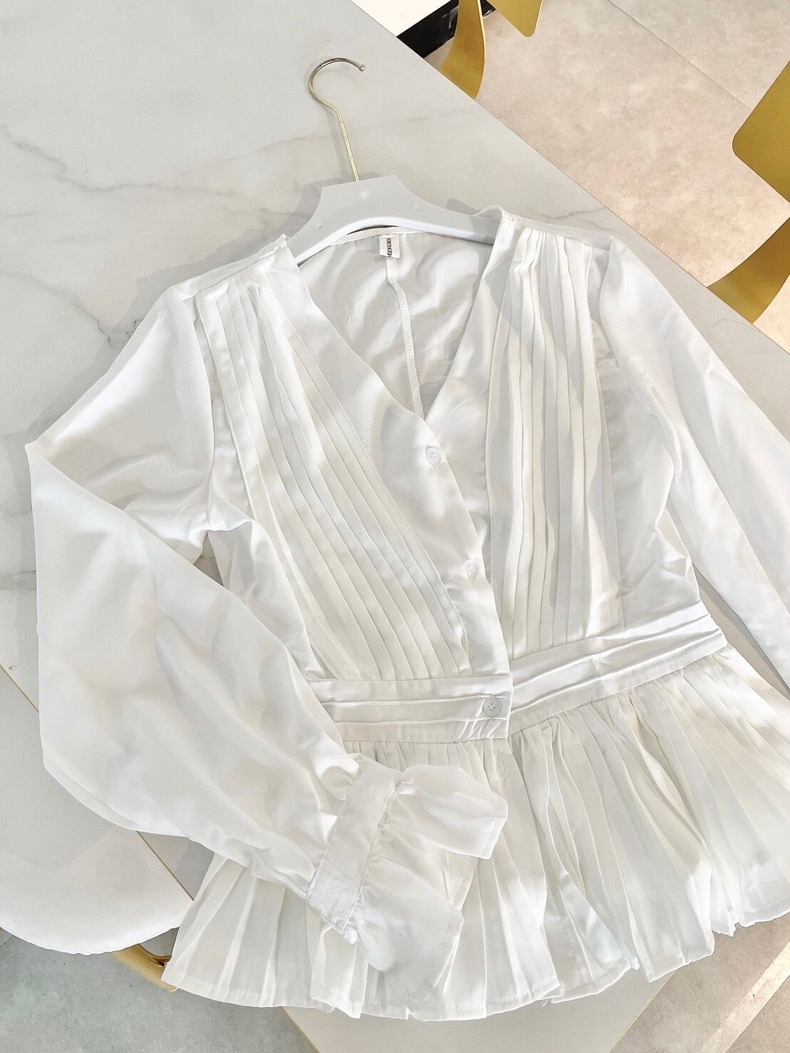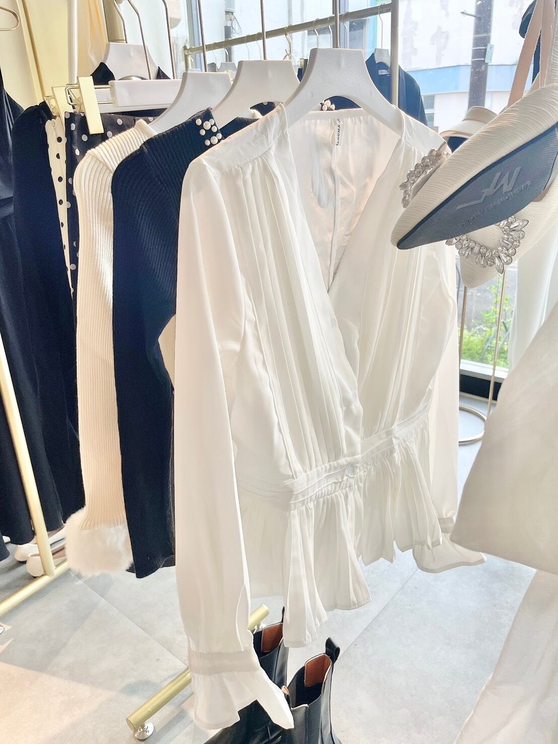顔まわりやウエストがすっきり見えるバランスのブラウスです♡