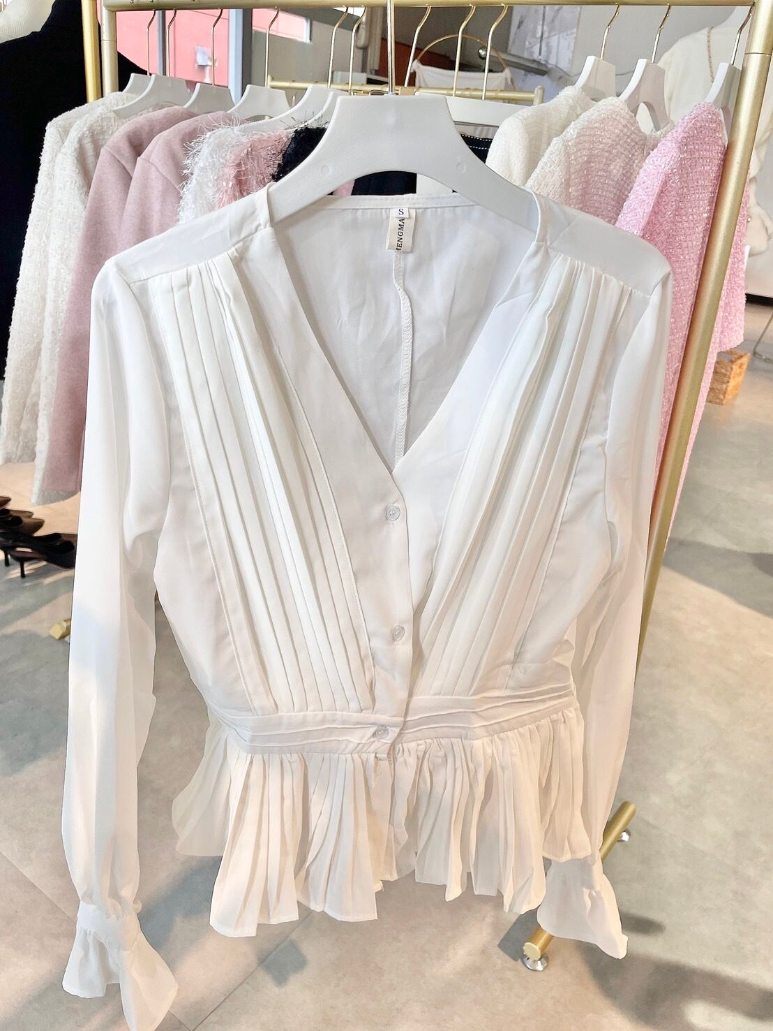 【即納入荷】ウエストマークプリーツボタンブラウス