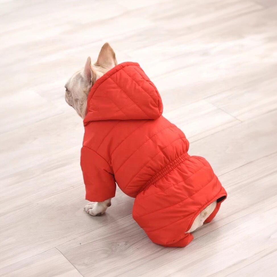 犬服 猫服 犬 猫 服 ペット ウェア ドッグ ダウン 防寒 冬 アウター ジャケット 防止 防寒 フード カラー 派手 黄色 赤 青 カジュアル スポーティ