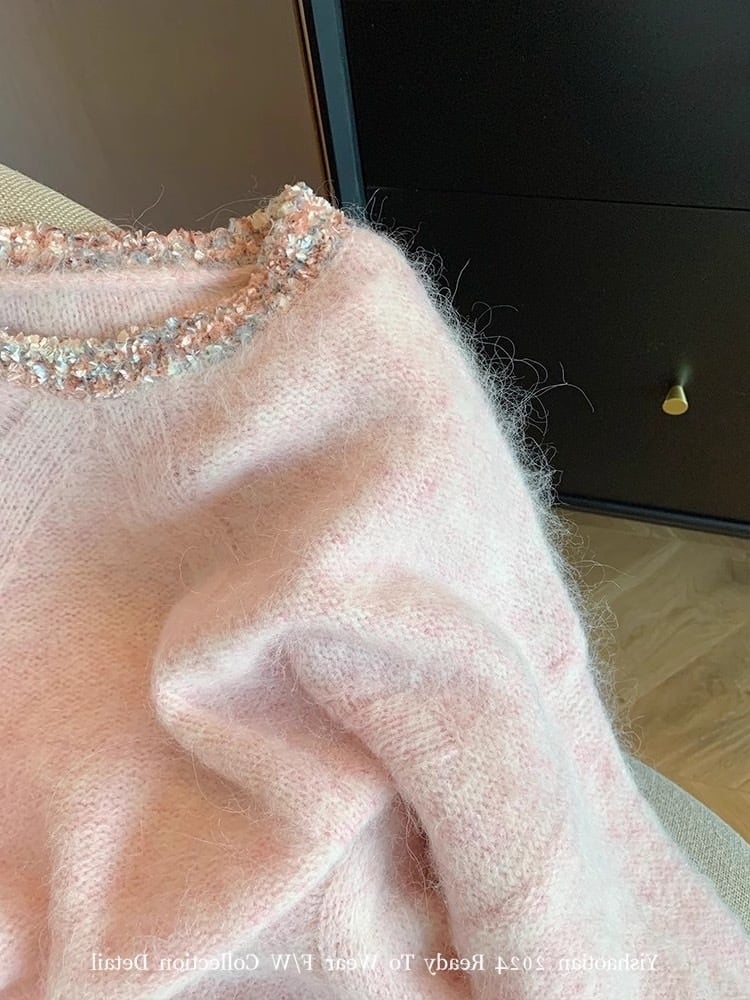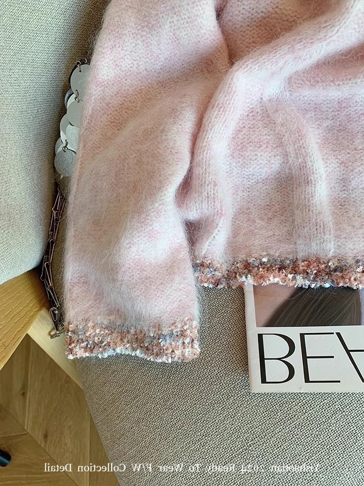 ツイード ニット ラウンドネック 丸首 ノーカラー 綺麗め 大人 可愛い 綺麗め カジュアル ゆるかわ